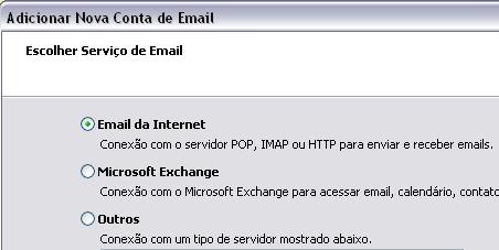 4. Escolha o serviço "E-mail da Internet" e clique em Avançar.