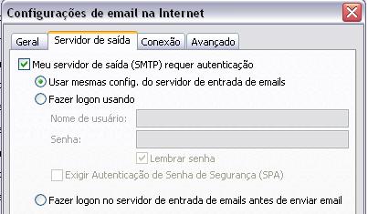 6. Clique na aba Servidor de Saída e marque a opção "Meu servidor de saída (SMTP) requer autenticação". Clique em OK.