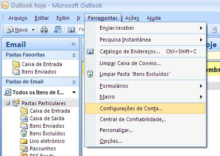 1. Clique no menu Ferramentas > Configurações de Conta.