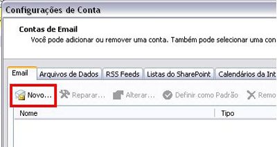 2. Na aba E-mail clique em Novo.